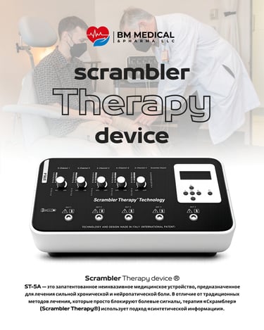 ST-5A — это запатентованный неинвазивный медицинский аппарат, предназначенный для лечения тяжелых хронических и нейропатических болей. В отличие от традиционных методов, которые просто блокируют болевые сигналы, Scrambler Therapy® использует метод «синтетической информации».
